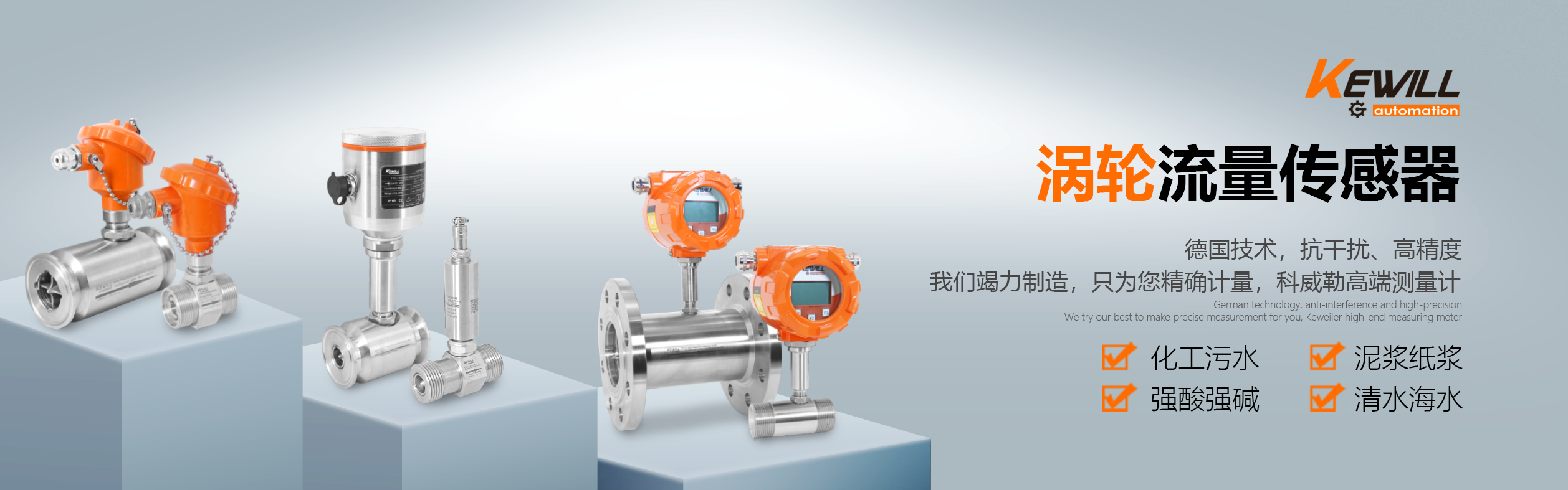 科威勒(中國)自動化有限公司是KewillAutomationGmbH(德國科威勒自動化公司)的全資子公司,主要銷售產(chǎn)品有:流量計,電磁流量計,進口流量計,進口電磁流量計,KEWILL(科威勒),溫度傳感器,流量傳感器,壓力傳感器,液位開關(guān),壓力開關(guān),物位開關(guān),溫度開關(guān),流量開關(guān),液位計等,銷售熱線:021-54430662. 德國科威勒 (KEWILL)成立于1975年,位于德國 Flughafenstr. 1-4 2325 Hamburg,主要生產(chǎn)流量開關(guān)、流量監(jiān)控器、流量計,是當前世界上較大的小口徑流量監(jiān)控器和開關(guān)生產(chǎn)工廠。1993年通過了ISO9001國際認 證,1999年發(fā)明了熱傳溫差技術(shù)并成功運用到流量檢測領(lǐng)域并已成為行業(yè)標準。 科威勒(KEWILL)公司擁有嚴格的質(zhì)檢管理體系和完善的售后服務體系,高品質(zhì)和良好的聲譽奠定了其在行業(yè)內(nèi)世界先進地位。